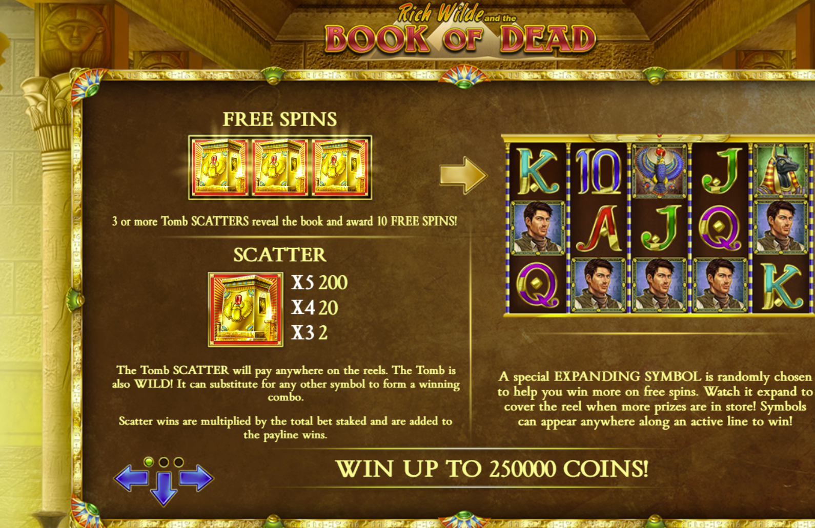 - Special Book symbol acts as both wild and scatter, triggers Free Spins and expanding-symbol feature. :contentReference[oaicite:46]{index=46}